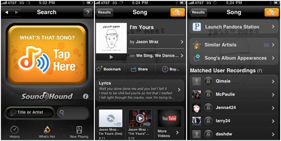Quante volte siete stati assaliti dal dubbio, quando dopo aver ascoltato una canzone che vi piace da morire, volete assolutamente saperne il titolo?! Beh vi suggerisco chi può venirvi in aiuto: SoundHound! Questa eccezionale applicazione, vi permette di ottenere il titolo di una canzaone ascoltandone un piccolo pezzetto. Non dovrete più dannarvi quindi, perchè avrete la soluzione a portata di mano, anzi di tasca, nel vostro iphone. E finalmente è disponibile la versione Italiana, ma soprattutto è gratis! La versione completa compatibile sia con l’iPhone che con l’iPad, è stata rinominata in SoundHound Unlimited, e l’unica differenza con quella gratuita consiste nel numero limitato di tag di quest’ultima. La potenzialità di SoundHound sono veramente tante e infatti potremo anche fischiettare un motivetto per ottenere il titolo della canzone, il testo o il video.